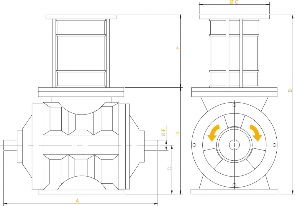 Pnömatik sistemlerde hava ile ürünü birbirinden ayırmada ve siklonların içindeki ürünü boşaltmak için kullanılır. Siklonların içerisindeki ürün makinenin kafes kısmından girerek rotor üzerindeki cepler vasıtasıyla ürün geçişi sağlanır.